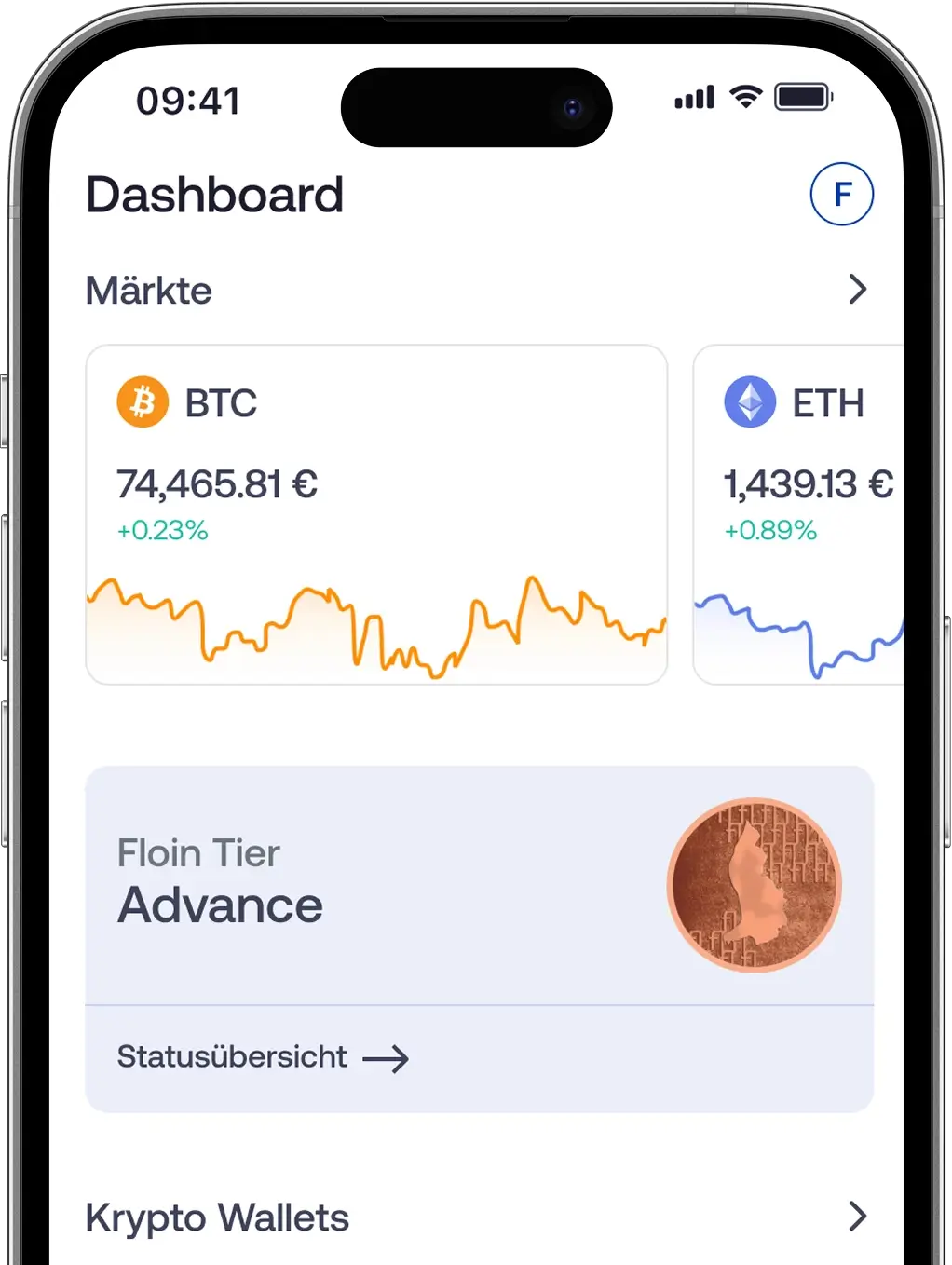 Die Floin App ermöglicht sichere und unkomplizierte Kryptoinvestitionen und bietet einen vertrauenswürdigen sowie zugänglichen Einstieg in die Krypto-Welt – für dich und dein Vermögen.